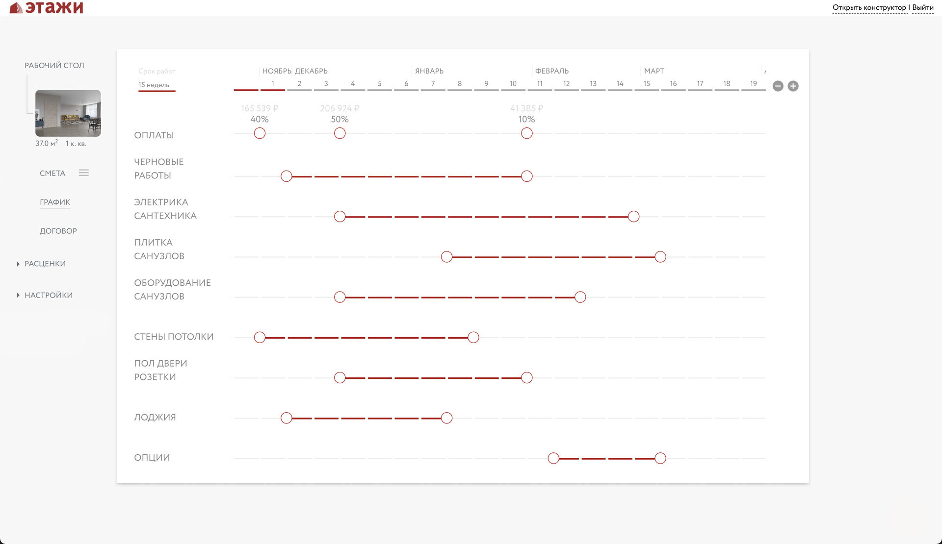 Буллеты притягиваются к концам линий расположенных ниже, что позволяет привязать оплату к окончанию каких-либо работ.