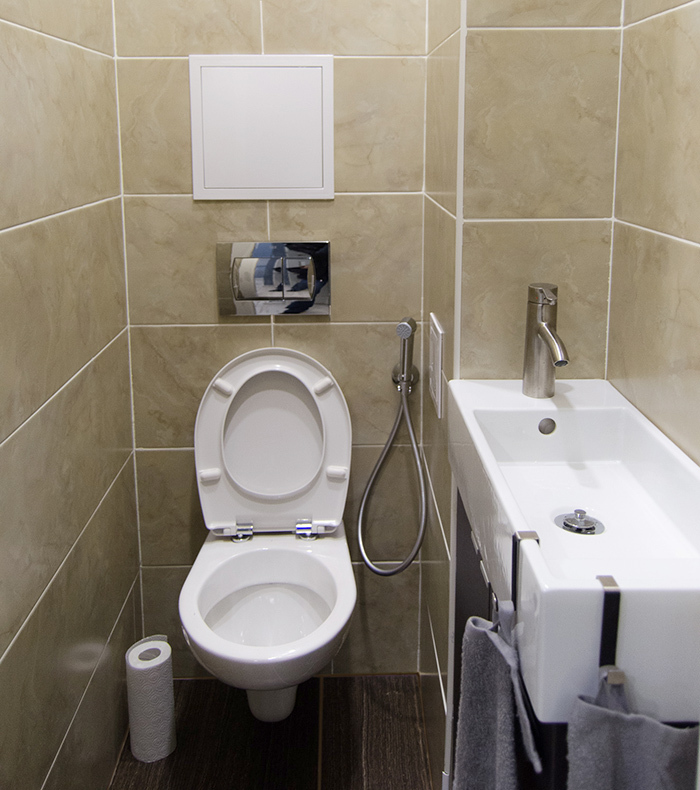 Всегда старайтесь использовать площадь туалета по максимуму, например, маленькая раковина в туалете - это очень удобно.