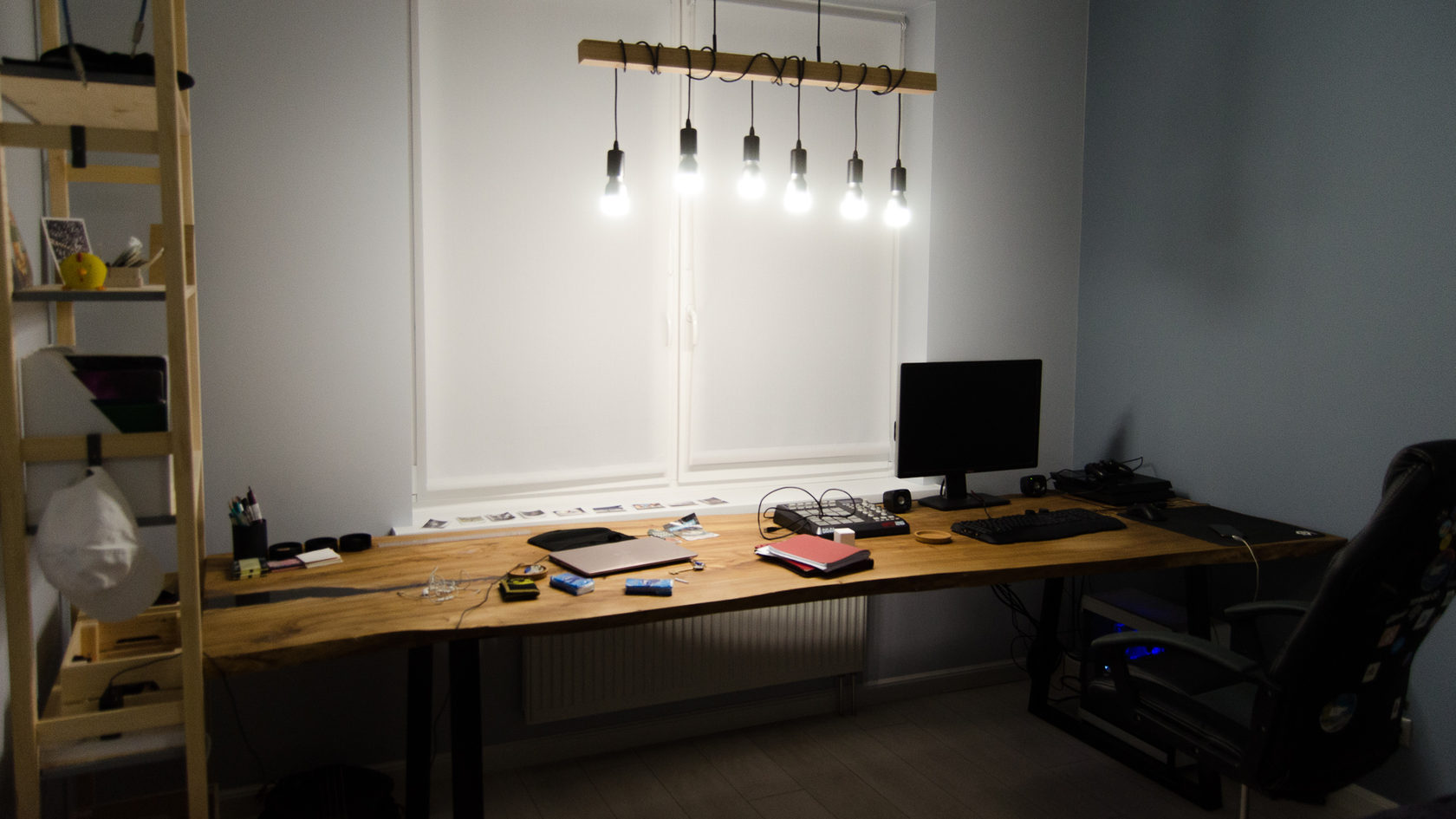 Главное место для творчества и учебы. Больше натуральных материалов! Так, стол выполнен из единого куска дерева, так называемомго "слэба".