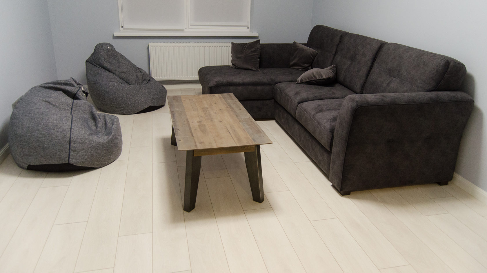 Ламинат Eurohome Floordreams Vario Дуб Аспен, 33 класса прочности, с фасками, уложенный специальной "палубной" раскладкой.