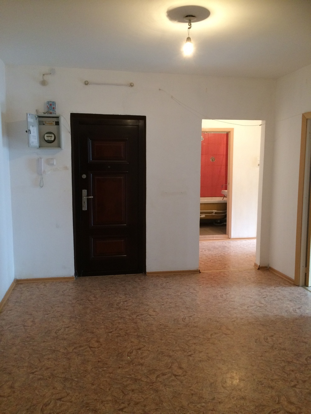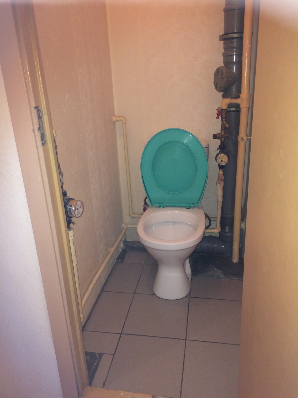 Мы не стали прятать старую трубу горячей воды в бетонный пол, поэтому появился небольшой "брусок".